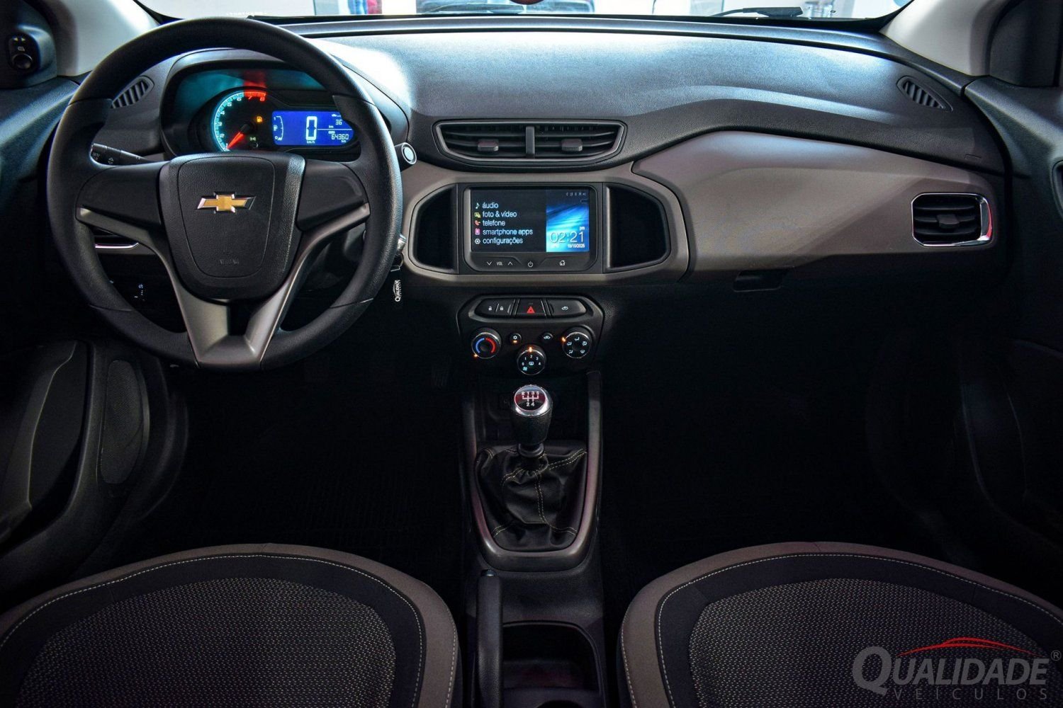 Motor Família 1 1.4L, capaz de gerar até 106cv (A) a 6000rpm e torque de 13,9kgfm (A) a 4800rpm. Aliado a um cambio manual de 5 marchas.