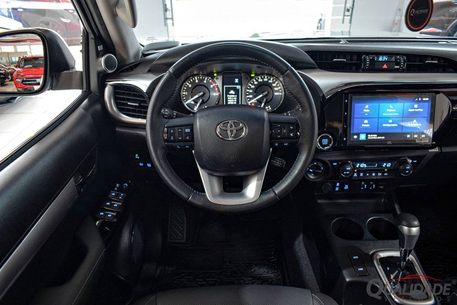 Na versão SRX Plus, topo de linha, o pacote de opcionais inclui: ar condicionado digital dual-zone, direção hidráulica, trio elétrico, espelhos com rebatimento elétrico, central multimídia, Android Auto, Apple CarPlay, Bluetooth®, USB, câmera de ré e 360°, volante multifuncional, piloto automático adaptativo, alerta de colisão frontal, frenagem de emergência, computador de bordo, sensor crepuscular, sistema de som premium JBL, faróis em Led, luzes de condução diurna, chave presencial c/ telecomandos, bancos em couro com ventilação, sensores estacionamento, controles de estabilidade e tração, rodas de liga leve, Airbags frontais, laterais, de cortina, EBD e ABS. Além dos itens citados, o exemplar está equipado com uma série de acessórios, somando mais de 20 mil reais em investimento, sendo alguns: sistema inovador RAZEN antifurto(Bloqueio de fechadura de porta contra arrombamento e cofre EXCLUSIVO para central eletrônica), pneus de uso híbrido XT, Downpipe Inox, engate original Toyota KEKO, trava de estepe, película de alta performance, vitrificação de pintura e etc.