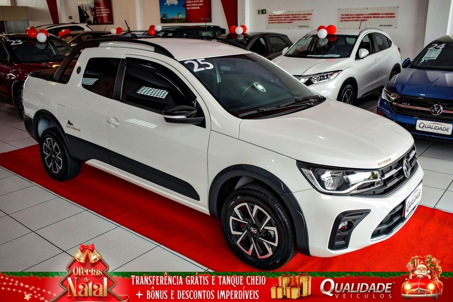 SAVEIRO EXTREME CD 1.6 MT 2025 na cor Branco Cristal, de único dono, com apenas 17.041km. Veículo impecável, em raro estado de conservação.